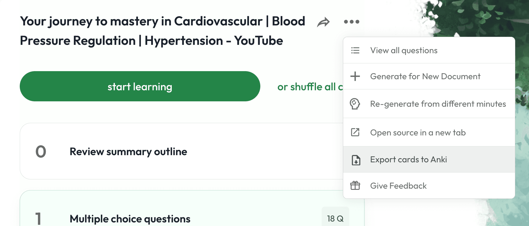 Click the three dots in the top right and then hit Export to Anki to download an .akpg Anki file of the flashcards