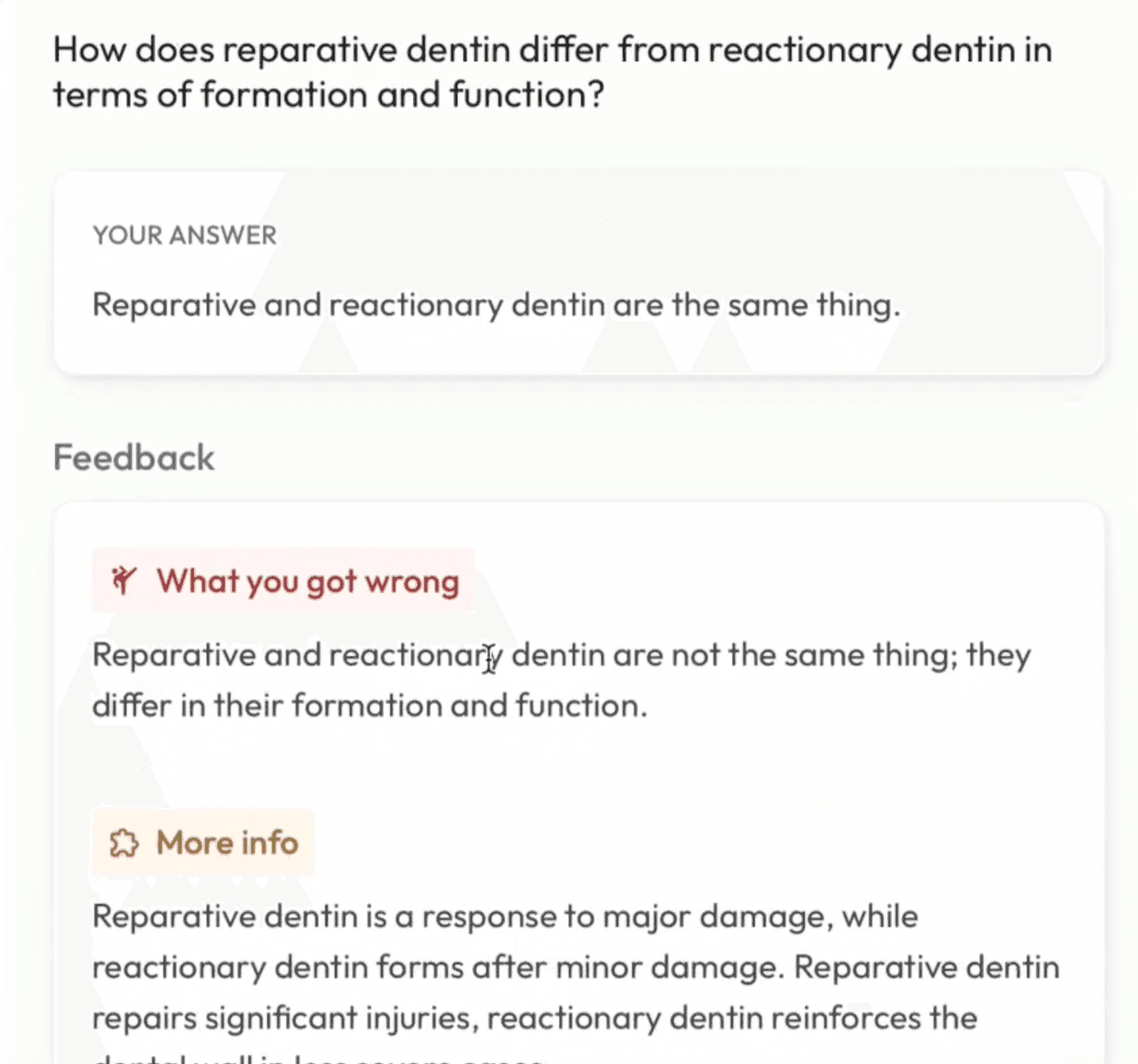 Then you will get smart flashcards. As you provide written responses to answer the questions, you will get instant feedback on your answer to tell you which part of your answer might have been wrong and why.