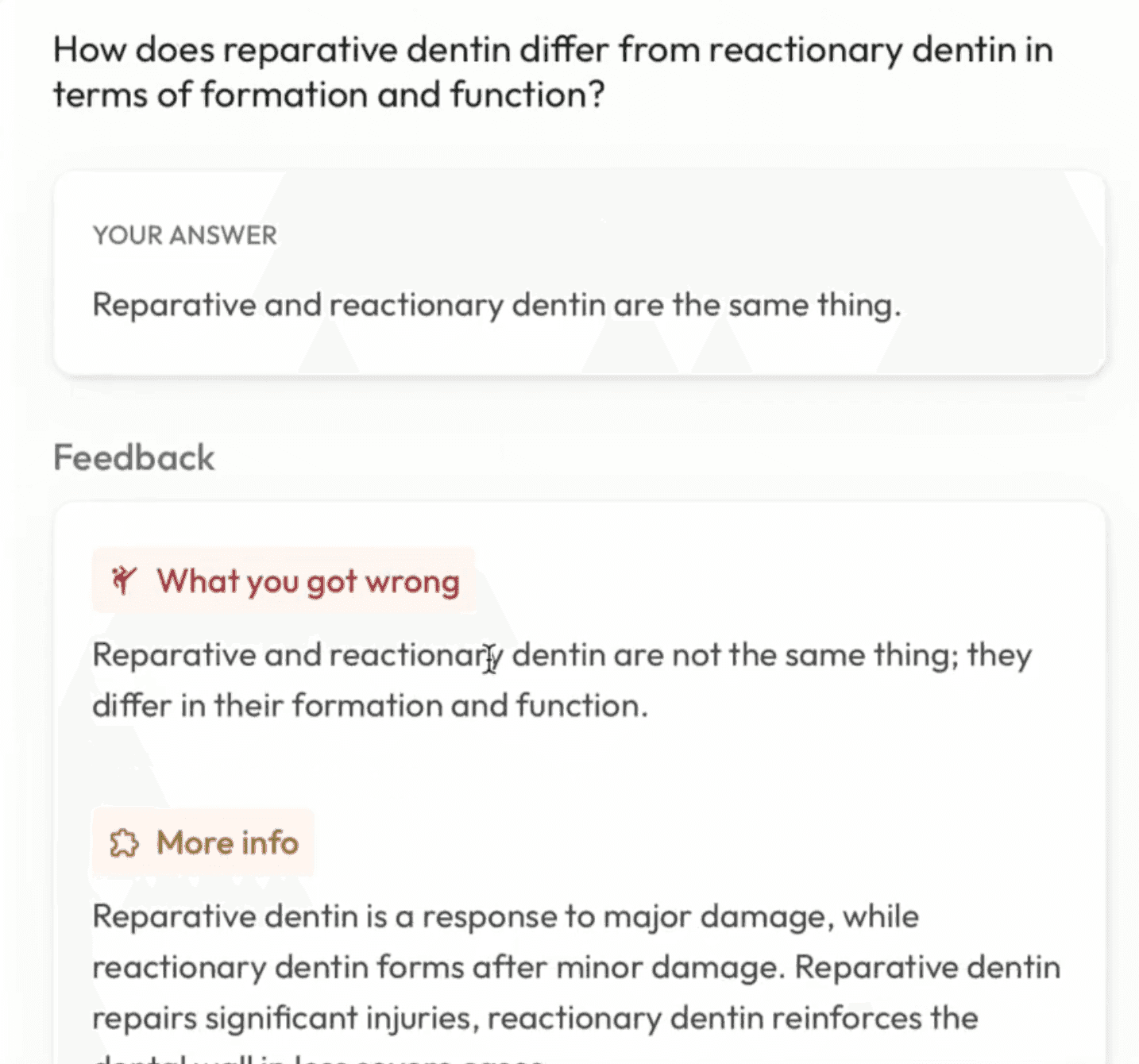 If you don’t learn why your answer was wrong, then it will be much harder to get the right answer to stick in your mind. Getting this feedback could take you from needing to answer a wrong question 4 times before understanding it, vs just 2 times. Multiplied across hundreds of practice questions this makes a huge difference.
