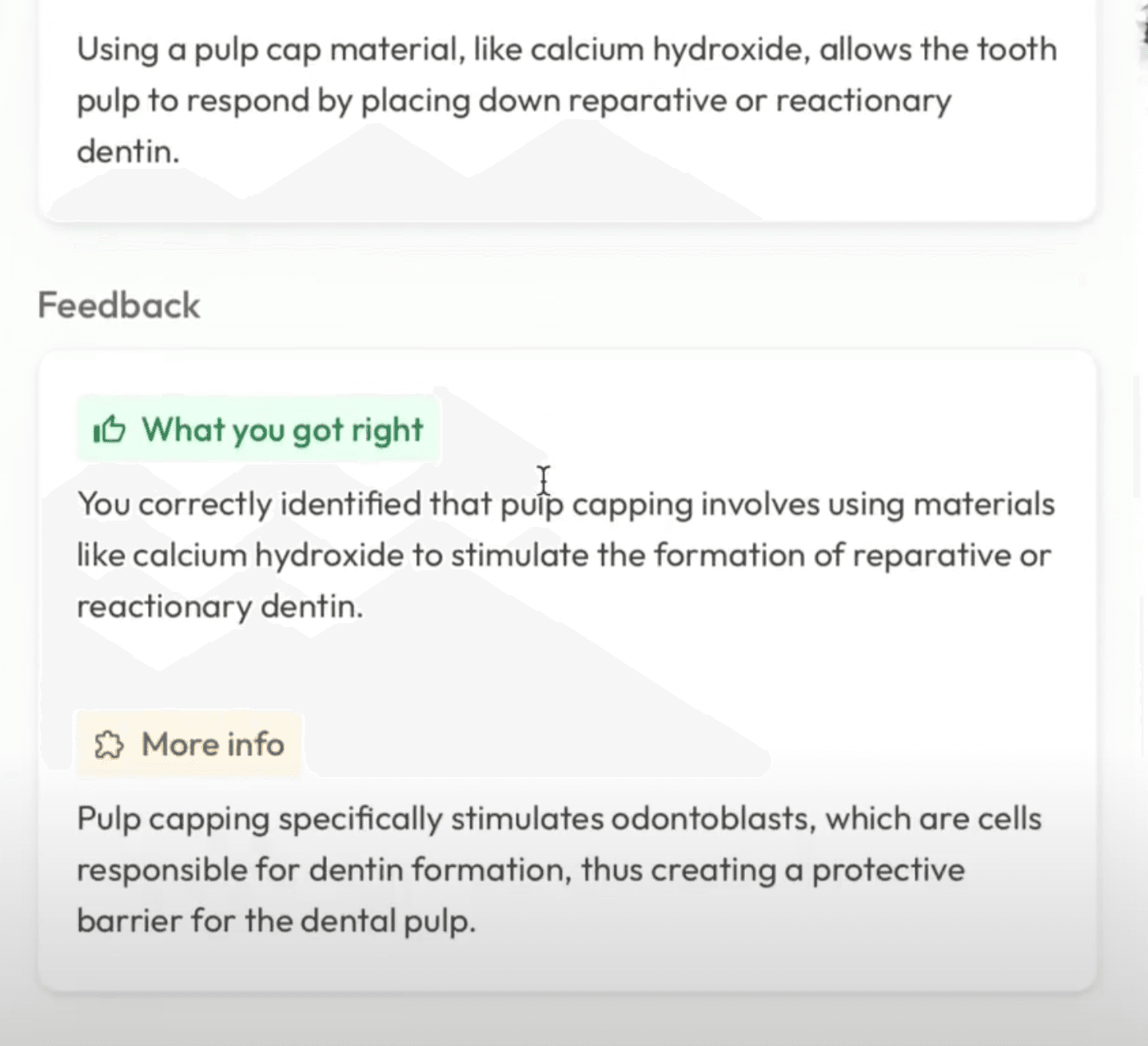 When you get a multiple choice question wrong, you'll see brief feedback telling you why it's not the answer you chose, but actually the other one.